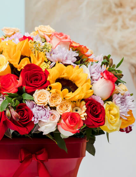 A detail they'll NEVER FORGET: Bukkiteddy, "our love bear," arriving, singing his song with an explosion of petals, helium balloons, and this beautiful basket of roses. You can choose the color of rose.