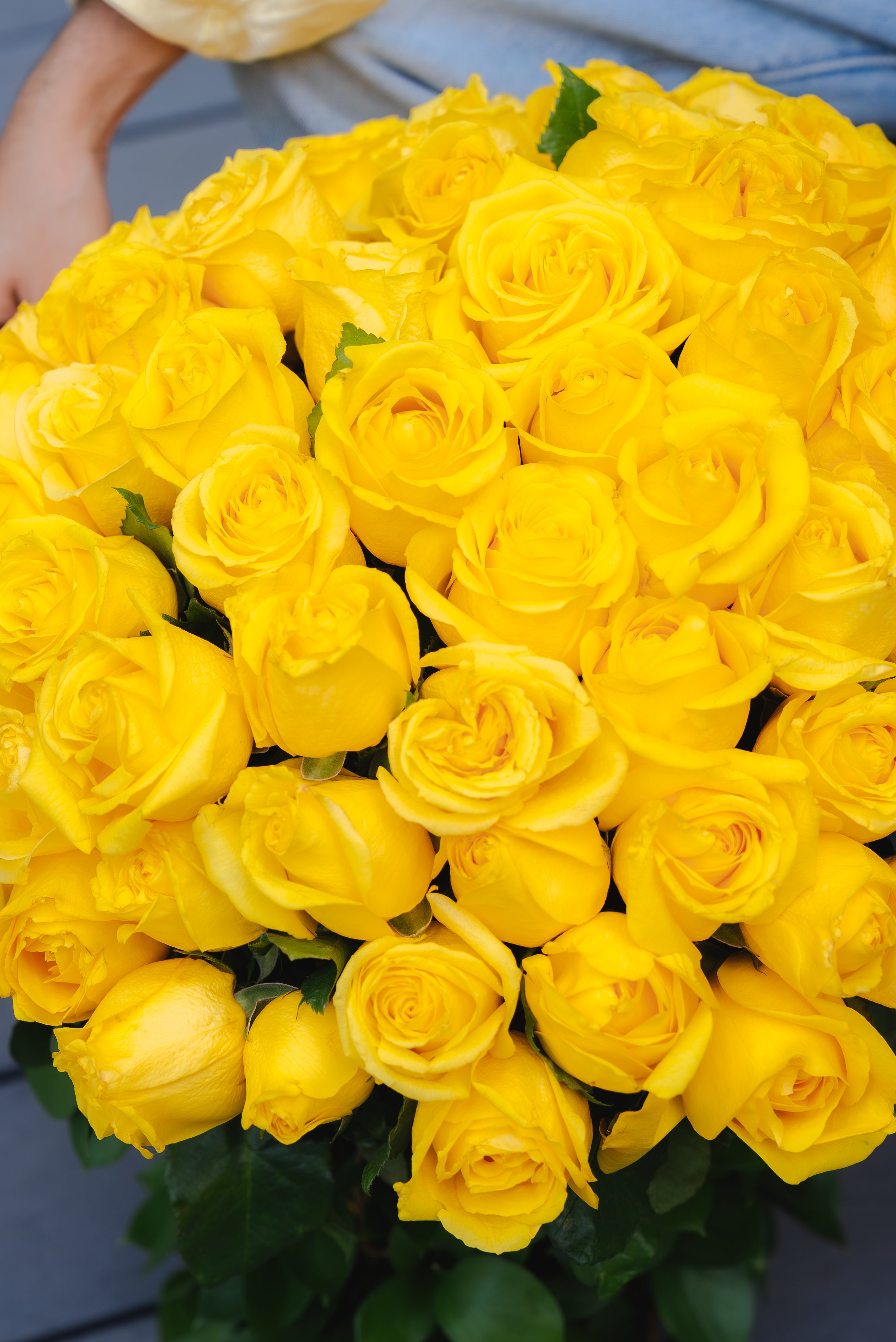 Contiene: * 70-80 Rosas amarillas, Rojas, Rosada o Salmón. * Capucha Bukaflor. * Vitaminas * Tarjeta GRATIS.