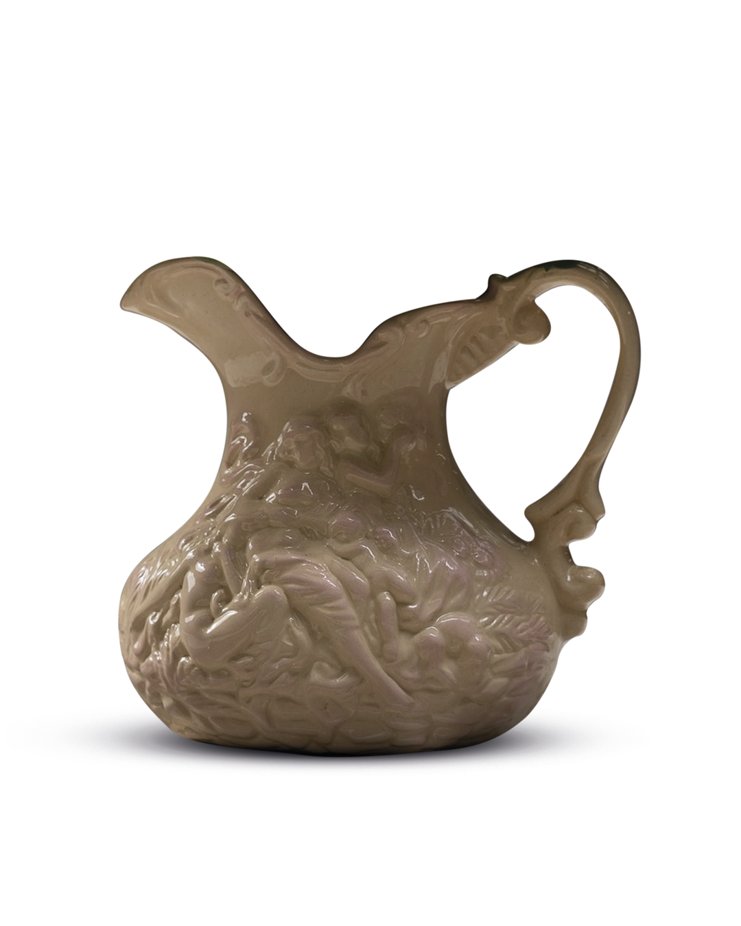 Jarrón artesanal en cerámica con diseño elegante en relieve.