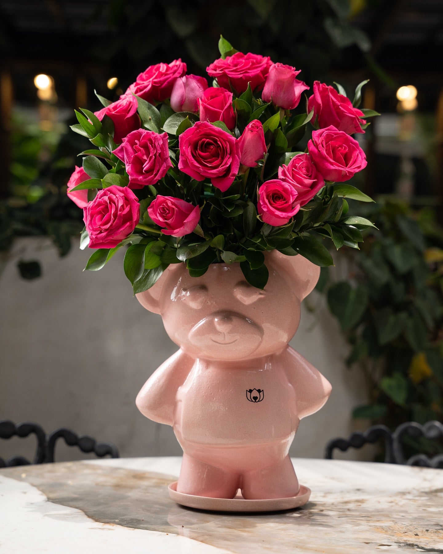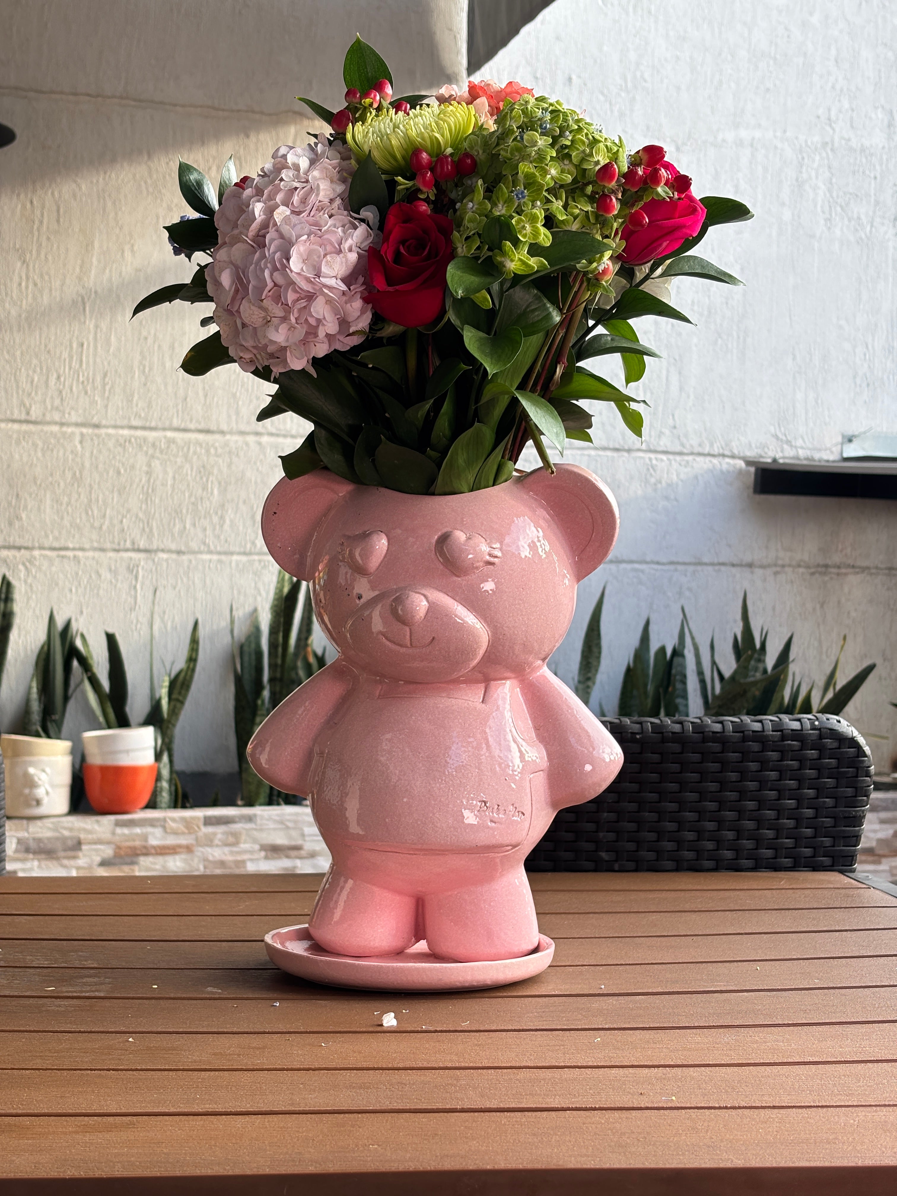 Un tierno jarrón en forma de osito, perfecto para resaltar la frescura y elegancia de tus flores favoritas. Ideal para regalar y decorar con un toque único y encantador. 💕✨