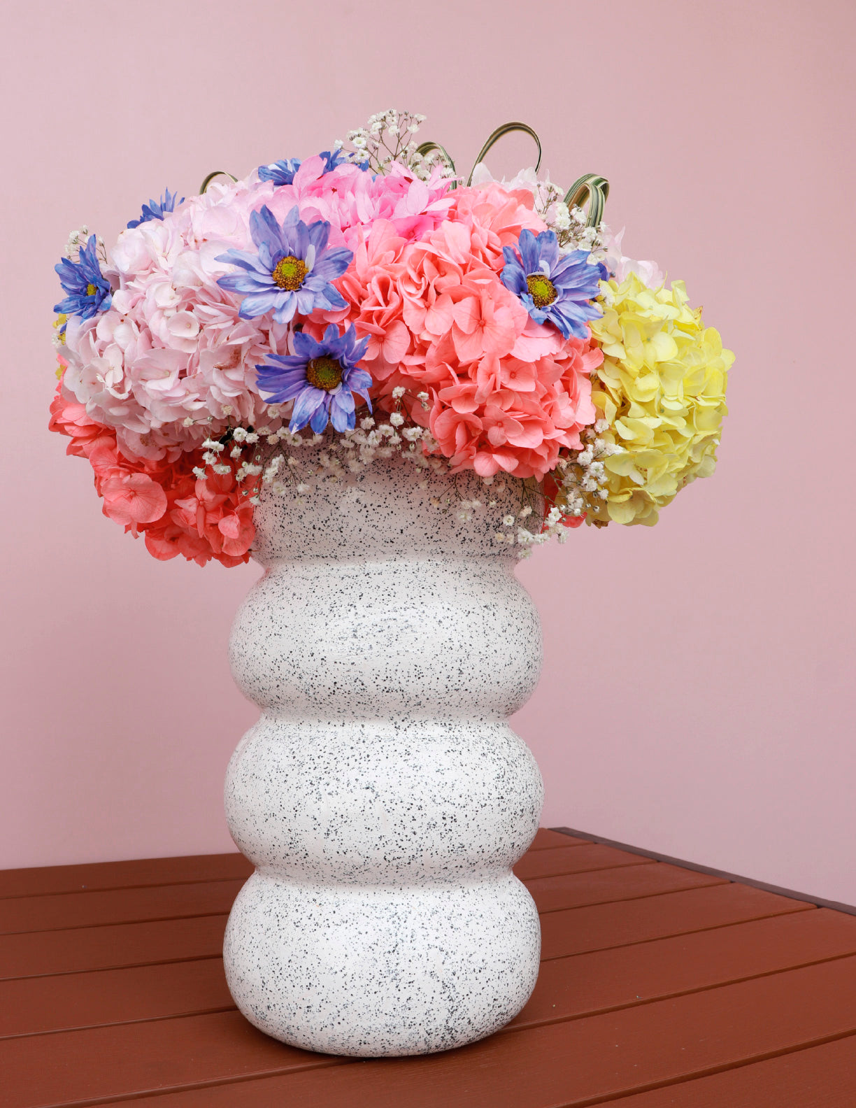 Cada jarrón es una obra artesanal, lo que significa que no hay dos idénticos. Sin embargo, podemos elaborar series bajo un mismo estilo, manteniendo siempre los detalles únicos de la mano del artesano.