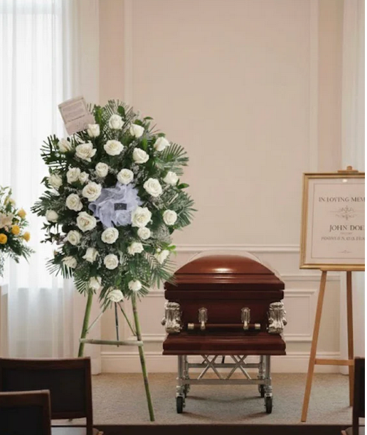 Contiene: * 36 Rosas Blancas. * Decoración con toques de Gipsófila. * Pedestal en bambú. * Moño en TULL * Tarjeta GRATIS. En caso de que no esté disponible el tono de la rosa, se reemplazará por gerberas de alta calidad. Agradecemos su comprensión. Por favor, deje su contacto de WhatsApp para que podamos comunicarnos con usted y coordinar los detalles del arreglo funebre. Es importante para nosotros brindar un servicio oportuno y respetuoso, por lo que entregamos los arreglos funebres de inmediato, considerando que el tiempo en sala es limitado. Estamos comprometidos con brindar un servicio de alta calidad y sensibilidad en momentos difíciles.
