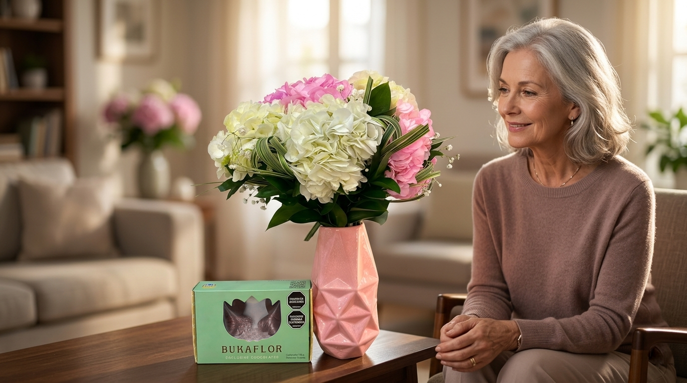 Celebra a mamá como se lo merece 💕Este hermoso arreglo combina delicadas flores en tonos suaves con un elegante jarrón y exquisitos chocolates, creando el regalo perfecto para consentirla en su mes.Un detalle lleno de amor, dulzura y gratitud para esa persona que lo ha dado todo.